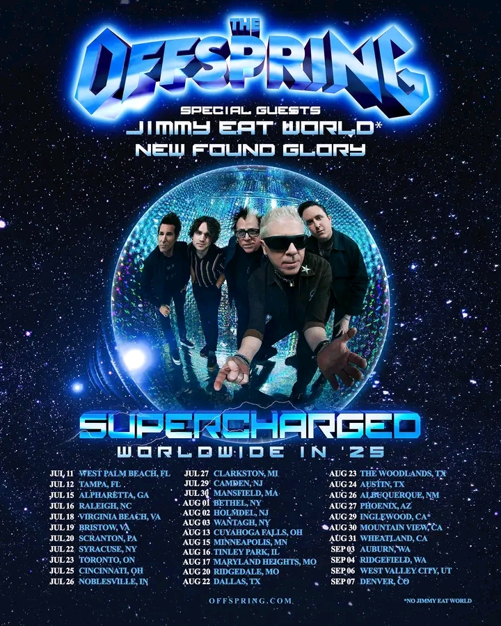 The Offspring Announce North American Leg of “Supercharged Worldwide in ’25” Tour with Special Guests Jimmy Eat World and New Found Glory The Offspring, one
