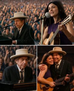 There was no build-up. No press release. No hushed rumor backstage. Just a piano bench, a spotlight, and Bob Dylan opening a fragile door into his heart. Then, with a wave of his hand, he welcomed a young woman to the stage—her silhouette strikingly familiar to those who’ve followed him since the Greenwich Village days.
