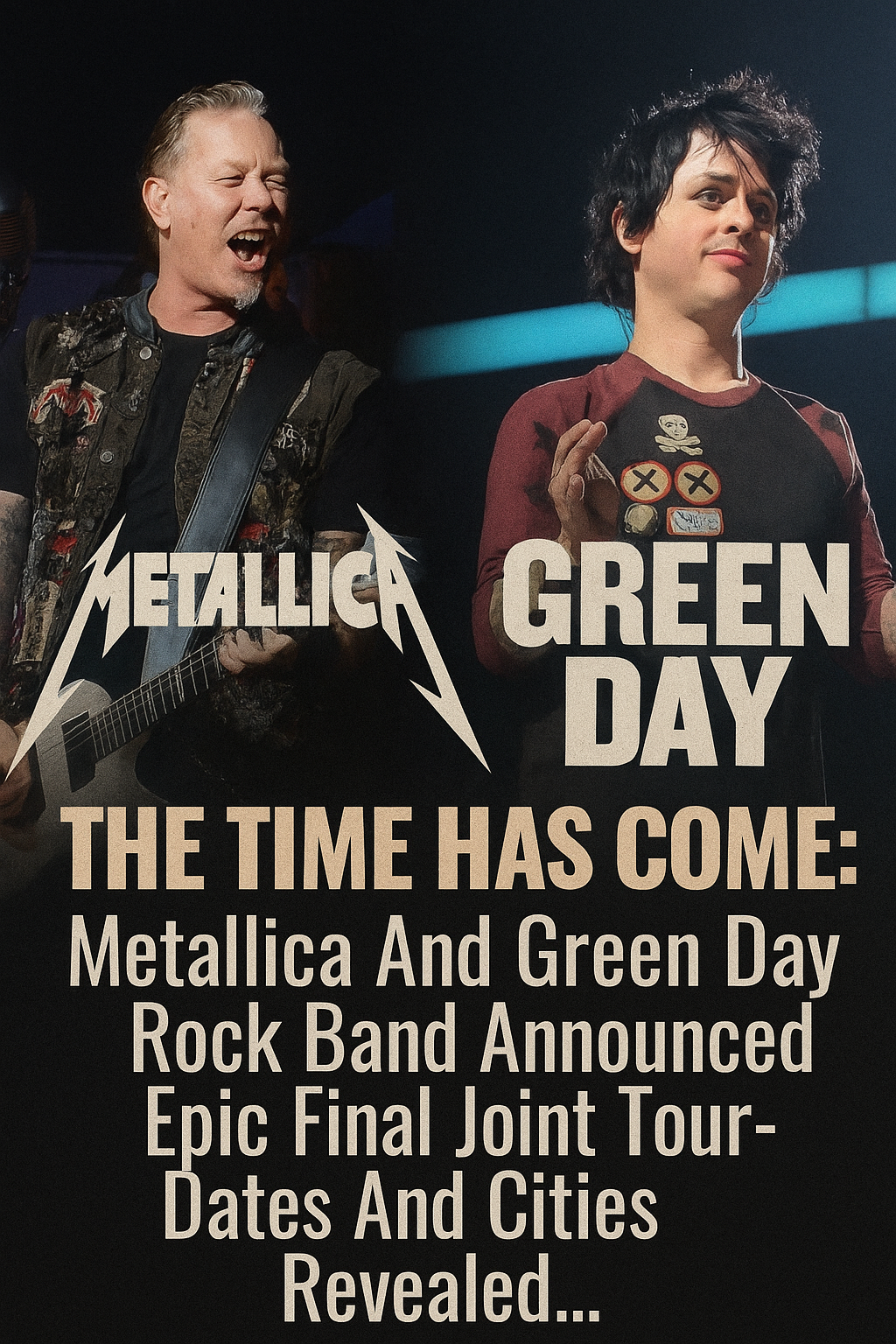 In what promises to be one of the most electrifying moments in rock history, Metallica and Green Day have officially announced their Final Joint Tour, marking a monumental farewell collaboration that has already sent shockwaves through the global music scene. Titled “The Time Has Come”, this epic run of shows will unite two of the most influential and generation-defining rock bands for one last unforgettable journey across continents — a celebration of legacy, rebellion, and decades of revolutionary sound.