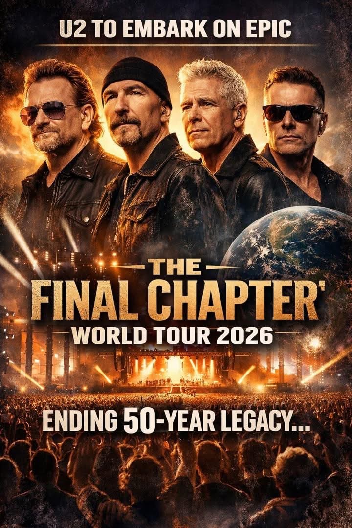 One of the greatest bands in music history is preparing to take its final bow. U2 have officially announced an epic 2026 World Tour titled “The Final Chapter,” a global farewell that will mark the end of a remarkable 50-year legacy. For millions of fans across generations, the announcement is emotional, historic, and deeply symbolic. After five decades of redefining rock music, stadium touring, and socially conscious songwriting, U2 are preparing to say goodbye—on their own terms, on the world’s biggest stages.