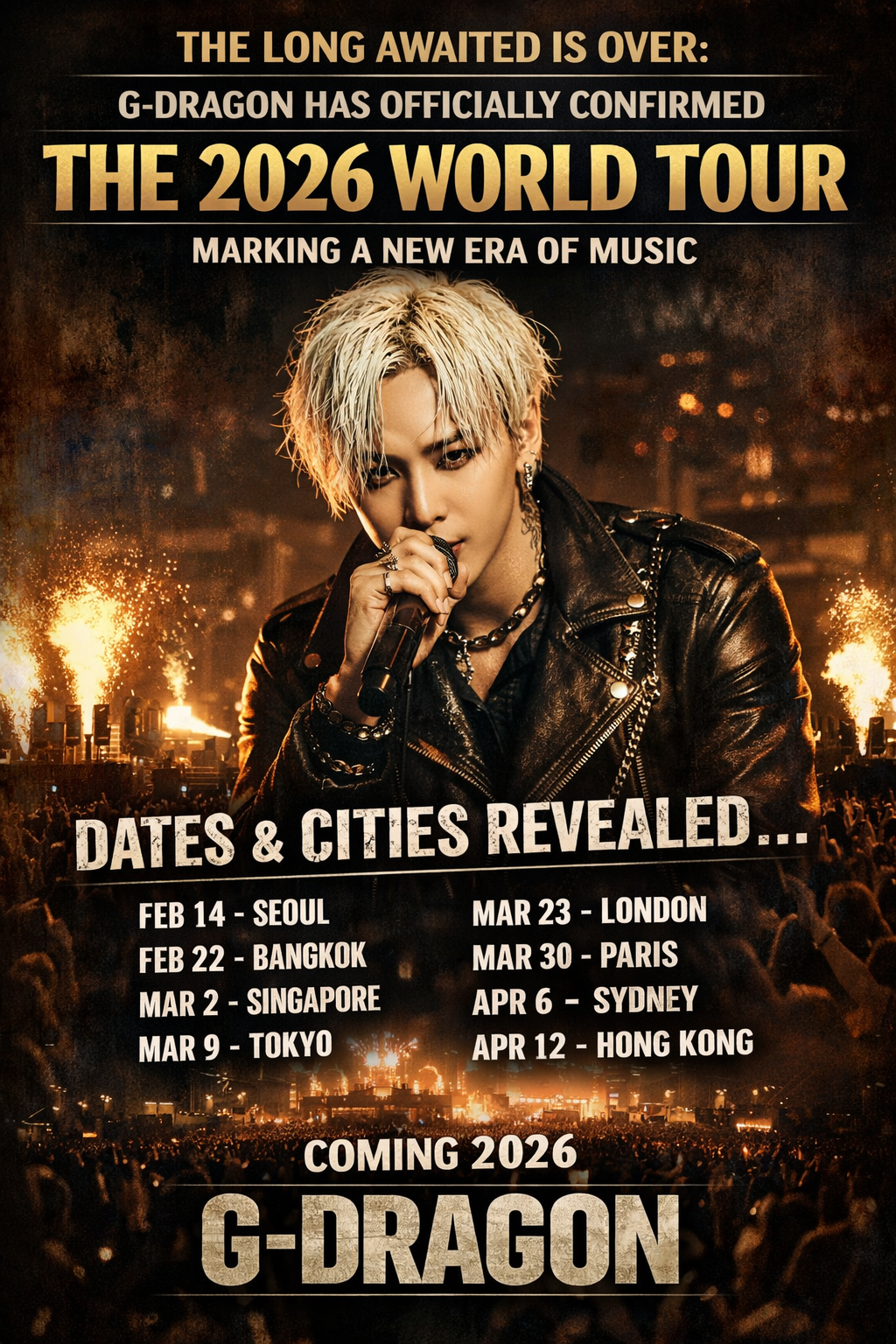 After years of anticipation, speculation, and growing excitement among fans worldwide, the moment has finally arrived. Global icon, trendsetter, and musical visionary G-Dragon has officially confirmed his 2026 World Tour, signaling not just a return to the stage, but the beginning of a bold new era in music. For millions of fans who have followed his journey from legendary group success to groundbreaking solo artistry, this announcement feels nothing short of historic.